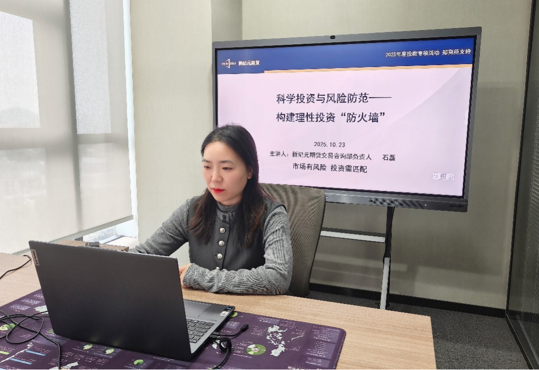 为积极响应2025年世界投资者周的倡议,10月23日,在郑州商品交易所的大力支持下,新纪元期货成功举办了以“加强风险防范 维护自身权益”为主题的投资者教育专项培训活动。此次活动旨在帮助广大投资者树立理性投资理念,切实提升风险防控能力。