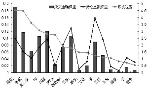 评论:上图是国内主要商品近20个交易日平均日成交金额和持仓金额在整个商品市场中的权重对比图。从日平均成交金额来看,棉花、橡胶、白糖和锌在商品市场的权重较大;从持仓金额来看,铜和豆油的权重较大。成交金额与持仓金额的比值在一定程度上可以反应出该商品的投机程度。