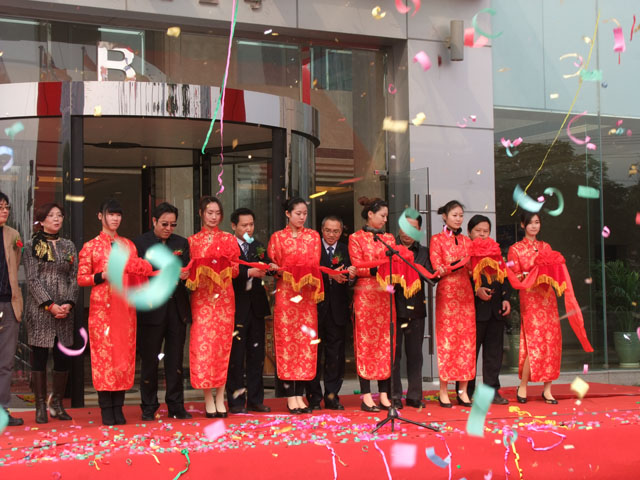 当地区领导与丁董冯总共同为常州营业部开业剪彩