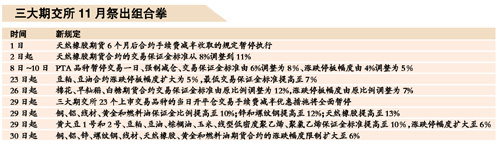 根据三大期货交易所的通知,从今日结算时起,多个品种的保证金提高到10%~12%。同时,自今日起,三大期交所23个上市交易品种的当日开平仓交易手续费减半优惠措施将全面暂停。