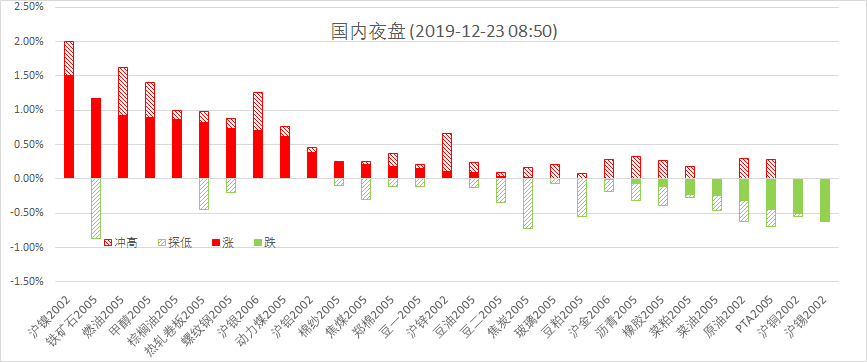 要闻2:国际原油市场,原油(WTI)小跌,因美国石油钻井数大增,产量忧虑重燃,美元反弹也施压油价;不过股市走强和贸易争端缓和提供支撑。CFTC报告显示,截至12月17日当周,投机者持有的原油投机性净多头增加40838手至536377手合约。ICE报告显示,截至12月17日当周,布伦特原油期货投机性净多头头寸增加24517手至398360手。贝克休斯数据显示,截至12月20日当周,美国石油活跃钻井数大增18座至685座,连续两周录得上升且创2018年2月来最大单周增幅。瑞银预计2020年1季度末布伦特原油价格在60美元/桶水平,其后三个季度价格分别为62美元/桶,64美元/桶和64美元/桶。