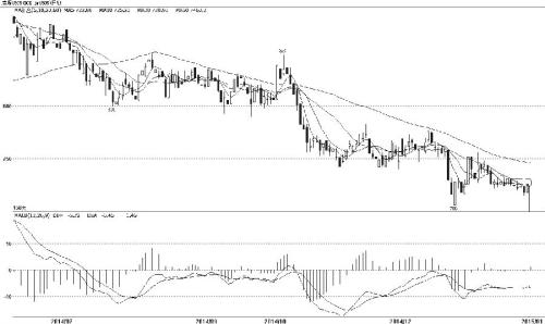 焦煤期货1505合约日K线图显示,当前均线系统呈空头排列的态势,这暗示着后市继续走弱概率较大。不过,盘面亦出现止跌企稳的迹象,因为MACD技术指标走势与价格走势出现底背离。结合以上两点,预计后市焦煤期货波动将加剧,短期或在700元/吨一线寻求一定支撑,但跌势难以彻底扭转。