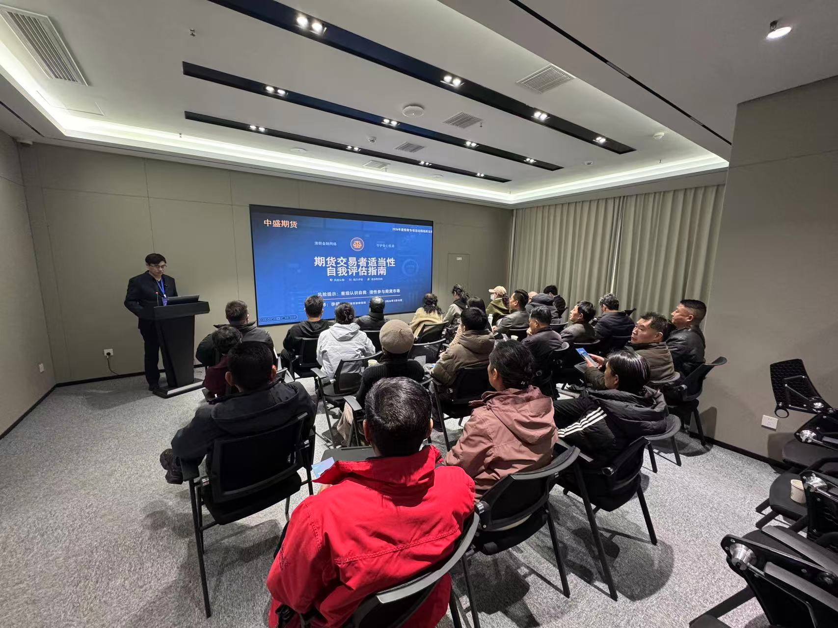活动现场,工作人员引导投资者参观投教基地,介绍功能分区与特色服务,帮助建立对正规期货市场的直观认知。随后推出《懂期货·辨陷阱·护权益》《期货交易者适当性自我评估指南》两大主题演讲,清晰界定正规与非法期货的认定标准,拆解“虚拟盘”“老师带单”等五类典型骗局、指导投资者从知识、经验、风控三维度开展科学自我评估,建立与自身情况相匹配的投资预期;同时详解维权全流程操作。活动同步开启线上直播,通过中盛期货视频号实时转播会场实况,实现线上线下知识同步传递、场内场外观众同频受益。