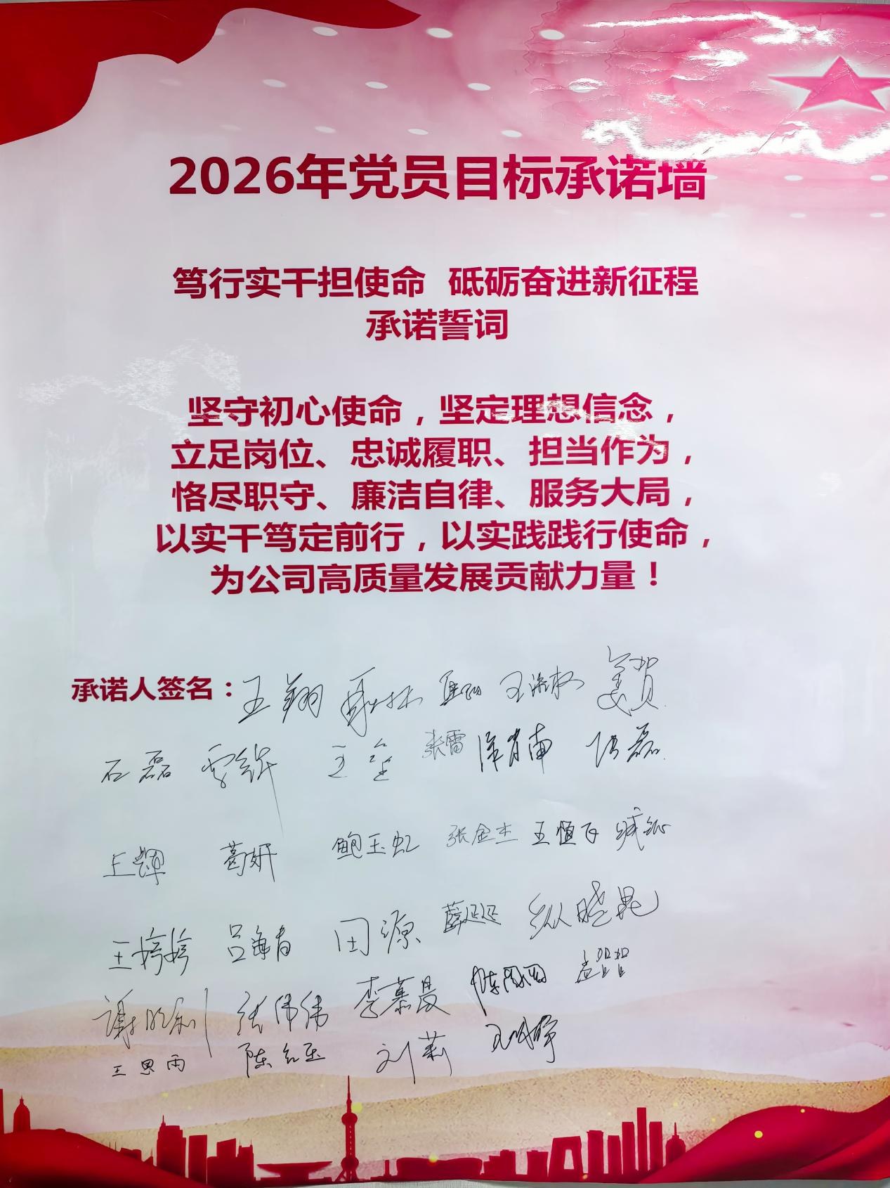 最后,全体党员在2026年党员目标承诺墙上郑重签名,以庄严承诺亮明身份、立下目标,彰显以实干践行初心、以担当助力发展的坚定决心。