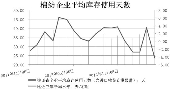 截至4月9日,被抽样调查企业棉花平均库存使用天数约为37.1天(含到港进口棉数量),环比减少3.7天。另据数据推算,全国棉花工业库存约81.2万吨,环比减少9.1%,同比减少14.7%,比近三年平均库存减少21.4%。不过总体来看,棉花工业库存量及棉企用棉暂时趋紧的现状,未来可从棉花竞价抛储中得到缓解。因此,此项数据对棉价的利多作用有限。