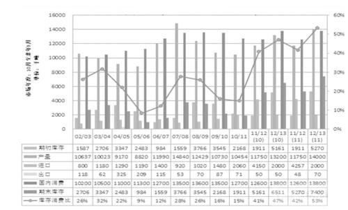 面对国内糖市继续倾斜的供需前景,市场自然寄希望于新榨季再次实施收储措施来平衡这一失衡现状。据了解,当前国储糖在库数量已经达到355万吨,按照2011/2012榨季全国食糖1300万吨左右的消费量计算,国储糖已占到年度总消费量的27.3%。而作为重要的战略物资和生活必需品——粮食的安全线仅为17%—18%,白糖一不属于重要的战略储备物资,二不属于生活必备的消费品,与粮食相比,其储备率已经明显偏高。