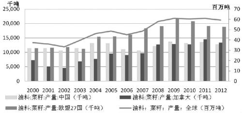 《油世界》发布的最新报告显示,2012/2013年度加拿大菜籽产量预计为1380万吨,低于早先预测的1500万吨,上年实际产量为1450万吨。另据加拿大农业食品部最新报告,2012/2013年度加拿大油菜籽产量预计为1335.9万吨,相比之下,早先预测为1541万吨。法国方面,今年天气高温干燥加上降雨匮乏,法国部分油菜籽作物未能发芽。中国方面,尽管统计局公布的数据显示中国国内油菜籽产量今年小幅上涨至1100万吨以上水平,但从实际了解到的情况看,受到种植成本不断提高和面积减少影响,中国本年度油菜籽产量实际仅为892万吨左右的水平,连续三年下降,国产油菜籽供需缺口或进一步扩大。