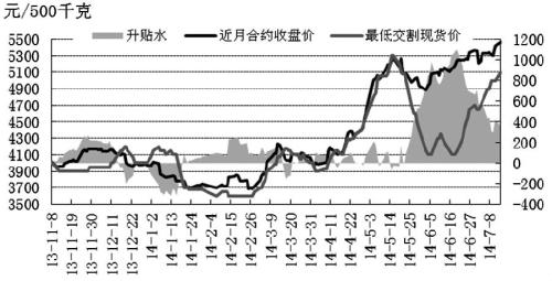 受鸡蛋现货持续上涨提振,鸡蛋1409合约价格再度创出历史新高,但上涨幅度相对有限,期价高升水逐步缩小。随着交割月临近,期现货价格会趋于一致,现货上涨幅度必将大于期货上涨幅度。