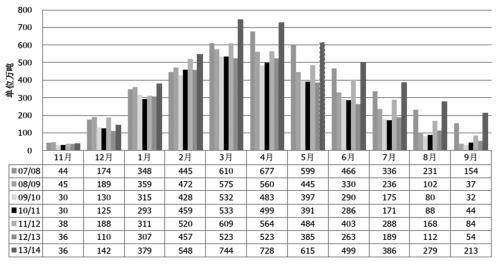 第四,整体经济环境不如往年,一方面终端需求力度跟不上国产糖及进口糖增长速度,另一方面资金来源困难。2013/2014榨季全国产糖约1330万吨,加上几百万吨的进口糖,总供应量超过1650万吨,而消费量约为1450万吨,市场供应至少过剩200万吨。这种情况下,全行业面临亏损状态,企业贷款难度增大,资金问题困扰糖厂。