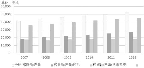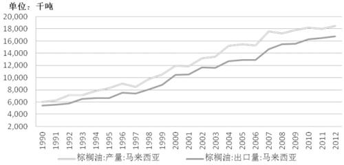 目前,世界上约有20个国家生产棕榈油。马来西亚和印度尼西亚是全球两大棕榈油生产国。受气候影响,马来西亚棕榈油单产有所下降,而印度尼西亚棕榈树正进入旺产期,单产提升,种植园得到进一步扩张。总体来看,印度尼西亚棕榈油产量更具增长潜力。马来西亚曾是最大的棕榈油生产国,其产量约占世界总产量的45%。马来西亚棕榈树种植面积达250万公顷,约占全国耕地的1/3。2008年,马来西亚棕榈油产量达到创纪录的17560千吨,产量在20年的时间里增长了3.5倍。2011年,马来西亚棕榈油产量维持在18000千吨左右。印度尼西亚目前是世界棕榈油生产第一大国,2005年其棕榈油产量约占世界总产量的41%。2006年,印度尼西亚棕榈油产量超过马来西亚。