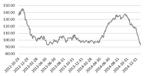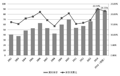 根据1月发布的美国农业部(USDA)供需报告,2014/2015年度美国大豆产量突破1亿元大关,为1.08亿吨。压榨量较去年增加125万吨至4844万吨,出口量较去年增加175万吨至5160万吨;由于供应增量大于需求增量,期末库存从2013/2014年度的250万吨增至1116万吨,至库存消费比升至11.19%。美国国内大豆供需状况较上一年度明显改善,供应宽松。从季节性来看,美豆出口已经接近尾声,出口需求对价格的支撑弱化。