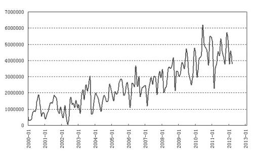 4月,中国进口大豆488万吨,远高于去年同期的388万吨。1—4月,中国累计进口大豆1814万吨,较去年同期的1484万吨增加22.24%。根据船期统计,5月进口大豆预计为600万吨,6月为550万吨,7月至9月为1380万吨。前三个季度进口量4345万吨,较2011年前三季度的3770万吨大幅增加575万吨,增幅为15.25%。中国大豆进口增加对CBOT大豆近期价格产生一定支撑。但是国内大豆下游需求却逐渐回落,一方面因为豆油进入季节性消费淡季,豆油替代品棕榈油的港口库存持续攀升至95万吨历史高位;另一方面是因为目前猪粮比价已经跌至6以下,养殖户处于盈亏边缘,补栏的需求较弱,这使得豆粕需求将出现大幅回落。由于进口增加,需求低迷,国内大豆港口库存在一季度下降至570万吨水平之后再度攀升至650万吨左右。需求回落和库存增加限制了中国未来的进口,从而对CBOT大豆远期价格产生利空影响。