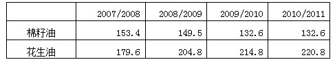在国内大豆、油菜籽等大品种油料产量未能增加的情况下,国产油脂供给能否增加要看小品种油了。去年第四季度,国内棉籽、花生出现减产,国内现货市场在棉籽油、花生油提价的带领下整体提价10%左右,期价随后大幅上扬突破近一年的整理区间,豆油Y1005上涨幅度达到19%。而今年国内小品种油料(棉籽、花生等)产量也并未发生根本性的改变。目前,棉籽等正在上市,前期缺乏油菜籽加工的企业有可能争抢加工棉籽。在棉花价格日益高涨的背后,棉籽价格也会水涨船高,从而推动棉籽油的成本,这也会提升整个油脂市场价格。目前,现货市场上,金龙鱼等小包装油已提价10%。预计后期国产小品种油脂有望跟风提价,或将再次拉开现货市场的涨价潮,花生油有可能带动现货市场提价。