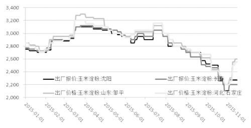 就下游玉米淀粉走势来看,其价格波动方向与玉米一致。截至11月16日,山东潍坊地区玉米淀粉出厂价为2500—2550元/吨,较上周同期上涨50—100元/吨;山东德州地区出厂价为2450—2500元/吨,较上周同期上涨50元/吨。11月以来,华北地区玉米淀粉价格已累计上涨300元/吨。两周内玉米淀粉价格大幅上涨主要源于两个方面:一是淀粉下游需求得到改善。前期淀粉渠道库存明显下滑、使得11月开始市场备货积极性明显增加。二是原料玉米价格企稳,也支撑了下游玉米淀粉价格。截至上周末,东北地区淀粉深加工企业每吨加工利润为负88元,加上补贴因素,淀粉厂加工利润达到275元/吨,已是历史相对偏高水平,主要大型淀粉加工企业开工率竟达到100%。