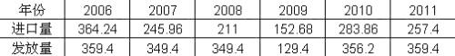 由于价格优势明显,本年度国内进口棉花数量预计将达到创纪录的450万吨。但是在当前棉价低迷的情况下,国家下发配额比较谨慎。纵观最近6年进口棉花的发放量,基本保持在350万—360万吨之间,只有2009年因为金融危机影响,进口量及发放量均偏低,不足200万吨。笔者认为,目前的情况与2009年比较相似,消费需求受经济低迷影响有所减弱。虽然进口量创新高,但在目前市场走低的情况下,进口棉花下放数量不会太多,速度不会太快。预计进口配额下发的对象也会以加工贸易型企业为主,以保持其出口竞争力。