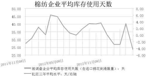 截至4月9日,被抽样调查企业棉花平均库存使用天数约为37.1天(含到港进口棉数量),环比减少3.7天。另据数据推算,全国棉花工业库存约81.2万吨,环比减少9.1%,同比减少14.7%,比近三年平均库存减少21.4%。不过总体来看,棉花工业库存量及棉企用棉暂时趋紧的现状,未来可从棉花竞价抛储中得到缓解。因此,此项数据对棉价的利多作用有限。