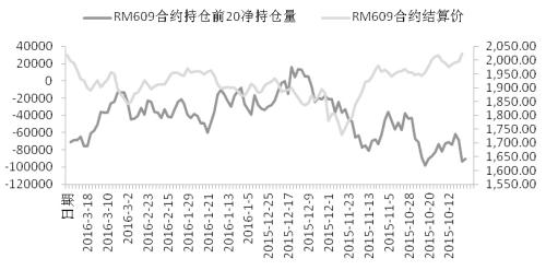 3月25日,菜粕主力1609合约的前20席位中,多头增持2018手,空头增持16552手,空头增持力度更大。