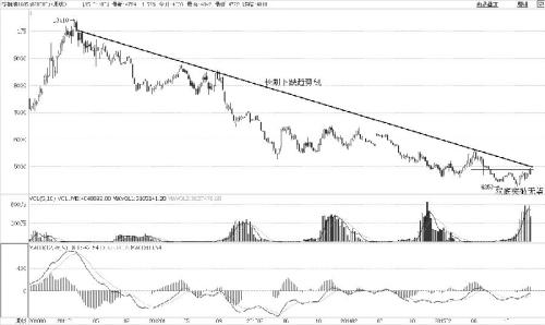 从豆油周K线趋势上看,自2011年以来,周K线一直处在下行过程中,并且有效跌至2008年的底部区域,所以豆油中长期没有做多的理由。中期来看,连接2013年5月底、2014年6月底和2015年6月初的高点所组成的周下跌趋势线是中期多空的主要研判依据。从本周走势上看,明显受制于此处压力而开始回调,预计短期走势将会和棕榈油高度相似。